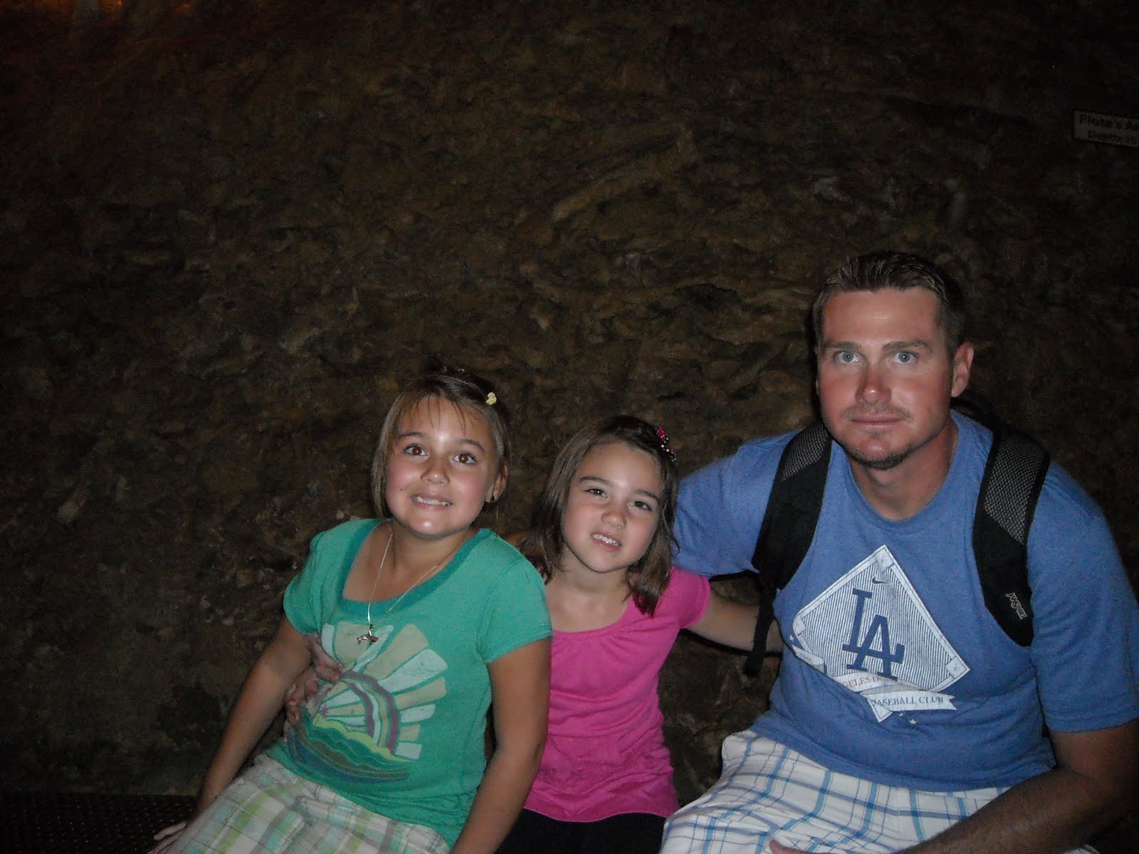 Day 3 was the Natural Caverns. Underground and cooler then above. I really love these places especially when they start saying things like "this straw formation was formed 6,000,000,000 years ago, all right?" (Our 15-year old tour guide said all right - ALOT!). That is a large number and my eyes start to glaze over because I just can't comprehend it. I think Audrey's did too because once our guide said we couldn't touch anything - that is all she thought about.